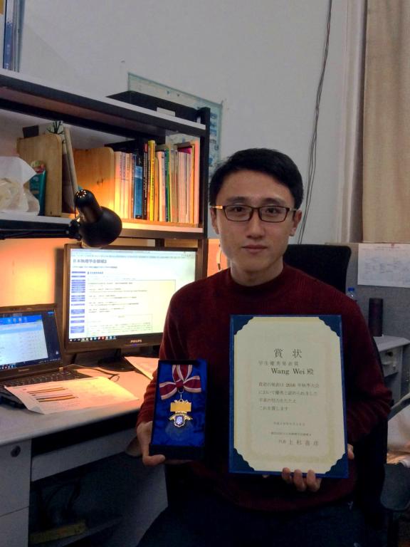 近日,在日本物理学会(JPS)2016年秋季大会中,我校乐鱼(中国)等离子体专业博士生王玮获得了本年度日本物理学会优秀发表赏(奖)。日本物理学会创建于1877年,130年间共涌现出11位诺贝尔物理学奖获得者。优秀发表赏(奖)项旨在表彰于物理学各个领域取得突出进展的在读博士研究生,每个领域最终仅遴选出4人。本届大会共有超过5000名参加者,会议报告及展板总计3600余件。评奖过程首先由会议期间通过不记名投票对1000余场报告进行初选,并最终送于会议组委会通过讨论产生。王玮同学还被邀请参加了获奖后由日本物理学会主办的恳谈会(宴会活动)。本次王玮获奖是该奖项在近三年内唯一一次由中国人获得。