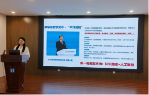 陈芳霖老师围绕“以知识图谱为核心,AI能力为驱动的新形态智慧课程”这一主题,对教育强国时代背景下智慧课程相关政策进行全方位解读,对课程建设具体环节进行系统性介绍,对课程建设预期成效进行合理评估。