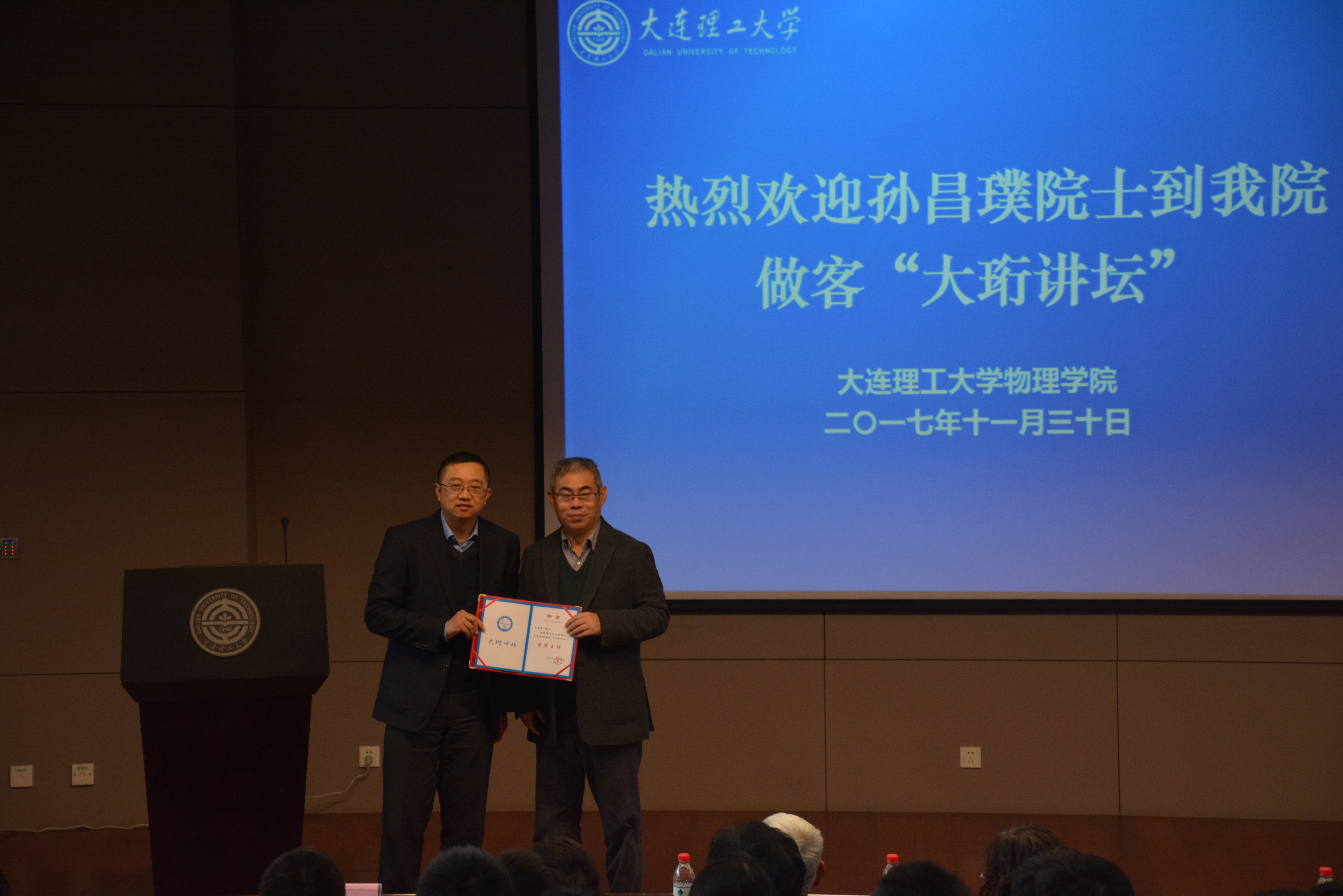 在讲座开始前,乐鱼(中国)赵纪军院长向孙昌璞院士颁发“大珩讲坛”荣誉主讲聘书。