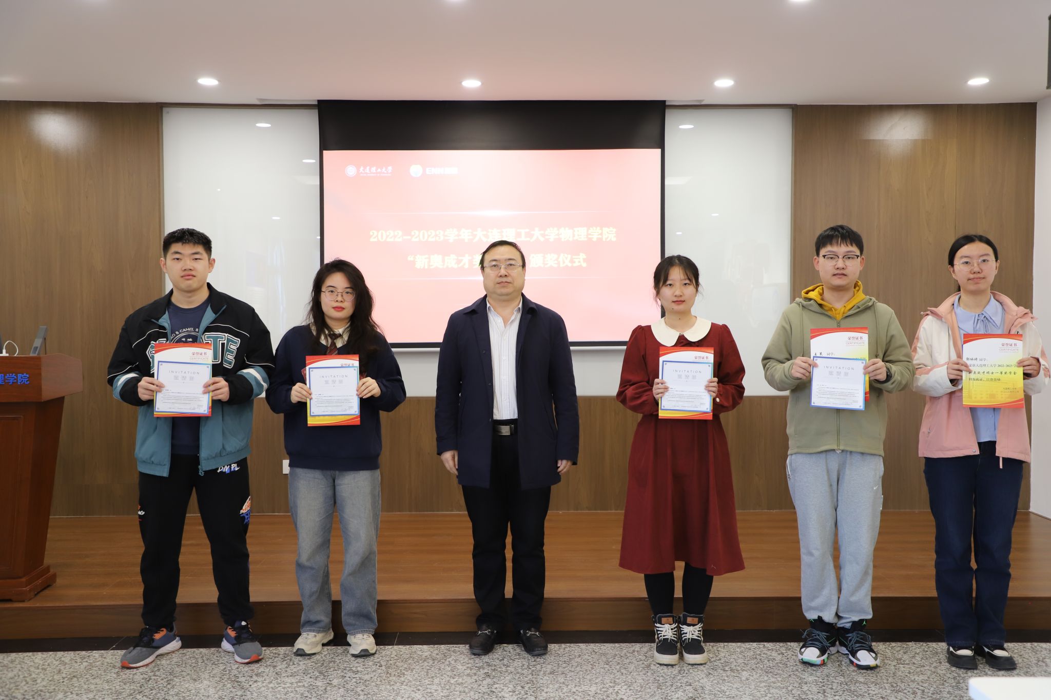 捐赠仪式结束后,举行了2022-2023年“新奥成才奖学金”颁奖仪式。刘敏胜院长和乐鱼(中国)党委书记于长水为获奖学生颁奖。