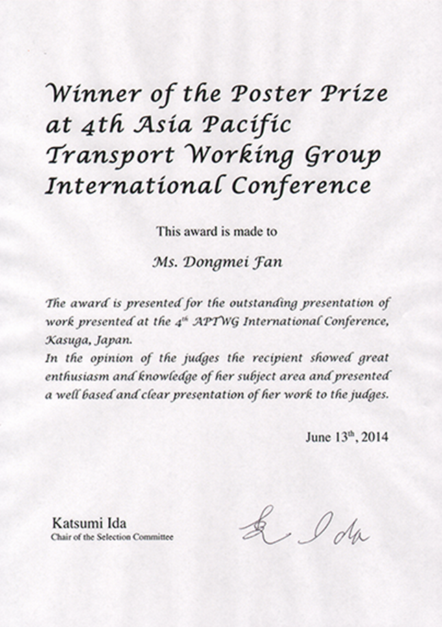 近日,我校物理与光电工程学院博士生范冬梅在日本九州大学举行的第四届亚太核聚变能量输运国际会议(4th Asia Pacific Transport Working Group International Conference)上获得唯一“最佳墙报奖(Winner of the Poster Prize)”。本次会议在70余篇参会墙报中设最佳墙报奖1名,以奖励科研内容与英文表达均突出的年轻科研工作者。