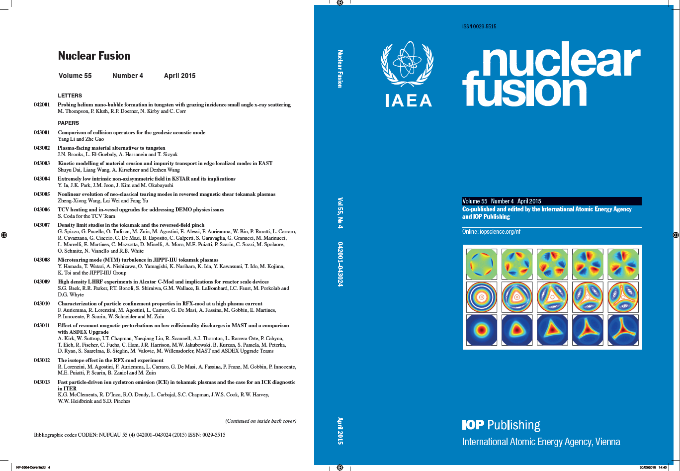 王正汹课题组的研究成果被选为核聚变权威期刊《Nuclear Fusion》的封面论文