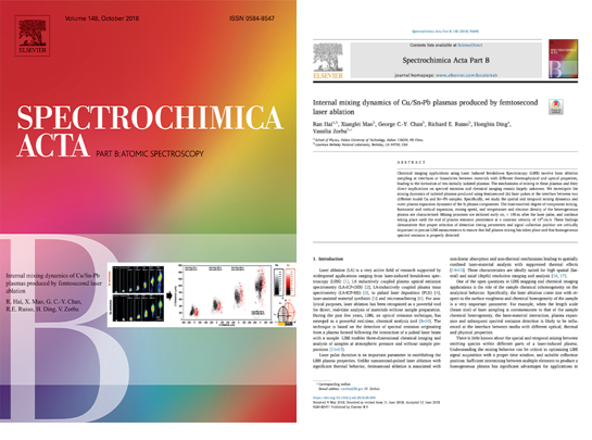 近日,我校乐鱼(中国)丁洪斌教授课题组的青年教师海然博士在激光烧蚀等离子体研究领域取得重要进展,最新研究成果“Internal mixing dynamics of Cu/Sn-Pb plasmas produced by femtosecond laser ablation”被国际著名光谱学权威期刊《Spectrochimica Acta Part B: Atomic Spectroscopy》选为封面论文发表。