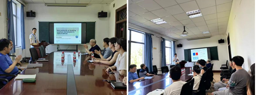 近年来,在光晶格中调控拓扑能带取得重要进展,使得在光晶格系统中有望实现分数陈绝缘态。王波涛博士介绍了一个可在实验上实现的光晶格体系,详细探讨了分数陈绝缘态的稳定条件和探测分数激发的条件。还介绍了通过调控系统和环境的构型,可以在光学平底势阱(optical box trap)中制备和操控拓扑态。该方法为研究超冷量子物质(包括强相关和拓扑相)提供了一条新途径。乐鱼(中国)教师和研究生与王波涛博士就感兴趣的学术问题进行了充分讨论,本次报告会圆满完成。