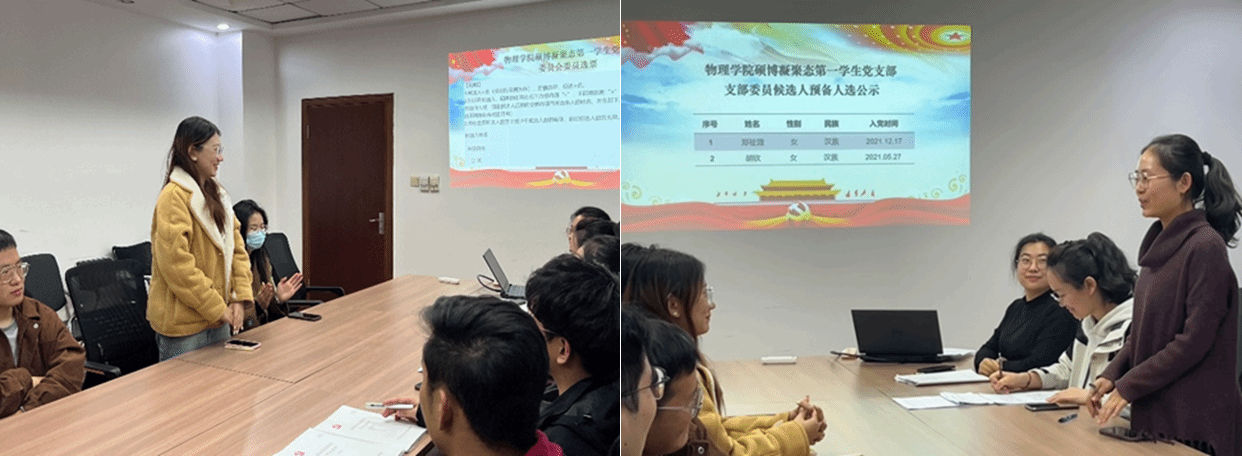 团结一心再进发,昂首阔步向未来。为深入学习领会全国两会的精神,切实将思想和行动统一到党中央的指示要求上来,硕博凝聚态第一学生党支部于2024年3月29日晚七点在科技园C座510会议室开展学习全国两会精神暨支部换届大会。会议由支部书记王瑞腾同志主持,支部全体党员参加。