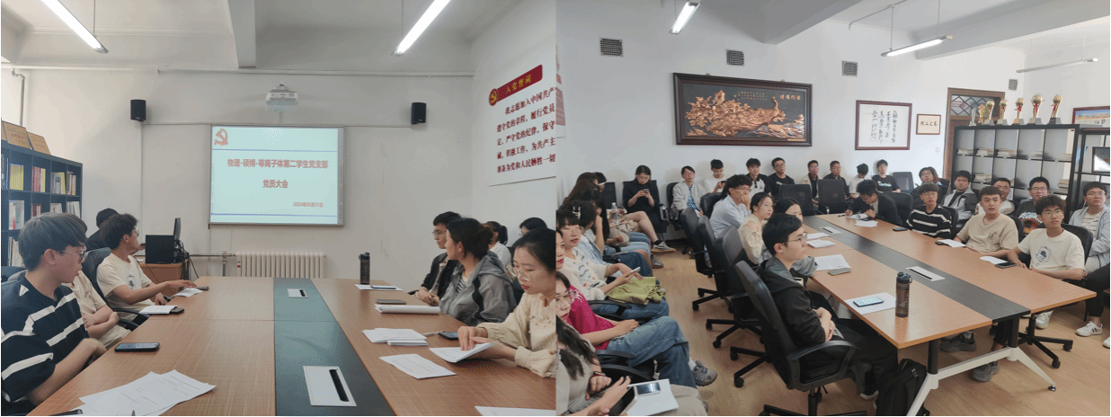 为进一步加强基层组织建设,加强支部全体党员的党性修养,全面落实党纪学习教育任务要求,乐鱼(中国)硕博等离子体第二学生党支部于2024年5月31日下午3点在物理系楼422室召开党员大会暨“学纪·知纪·明纪·守纪”主题党日活动,会议由党支部书记张宇同志主持,支部全体党员参加。