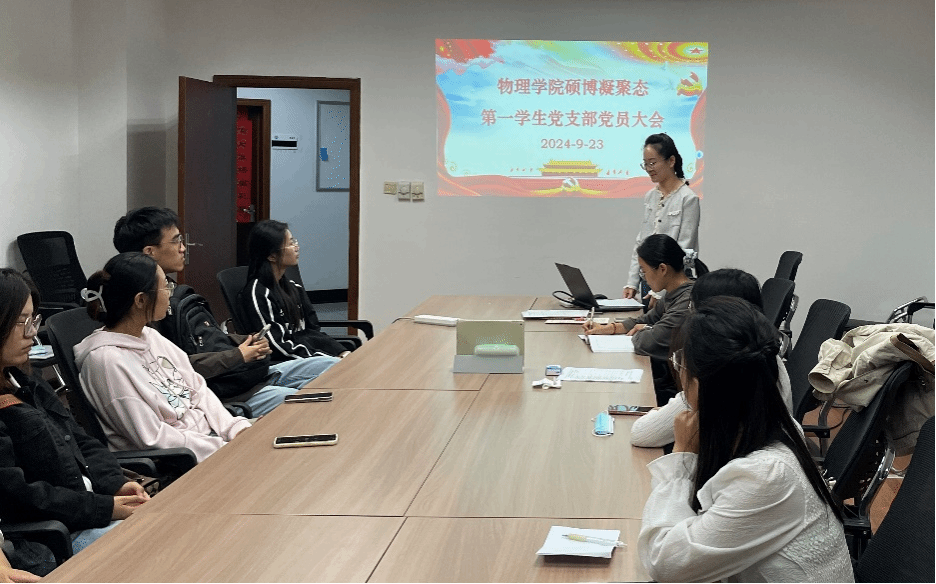 为进一步学习党的二十届三中全会精神,深入领会会议的核心要义和重大决策,乐鱼(中国)硕博凝聚态第一学生党支部于2024年9月23日晚七点在科技园C座510会议室召开党员大会暨“聚焦改革新篇章,坚定信念促发展”主题党日活动。会议由党支部书记李希娜同志主持,支部全体党员参会。