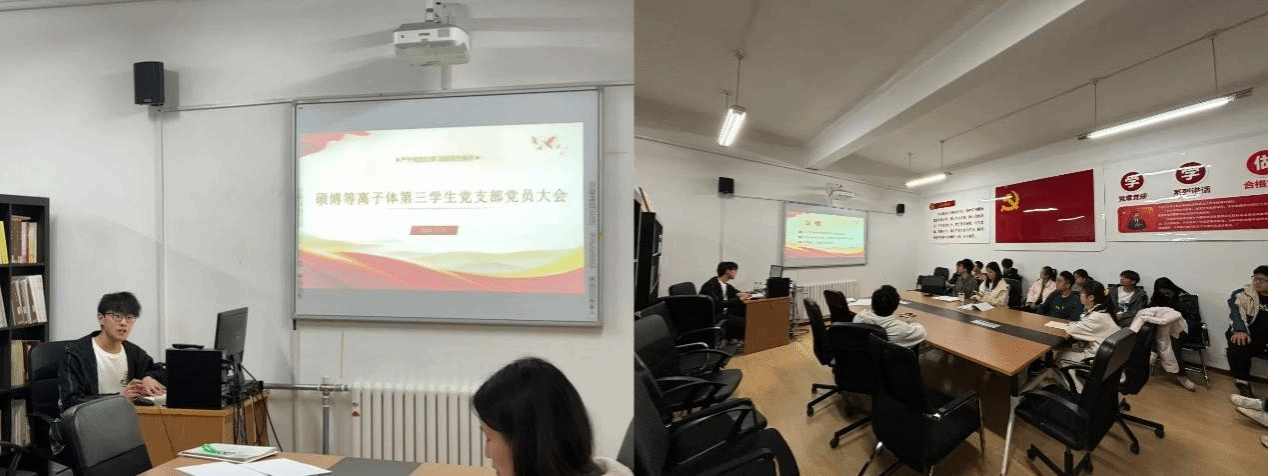 为了深入学习和贯彻党的二十届三中全会精神,切实提升支部党员的政治素养和理论水平,增强党支部的凝聚力,乐鱼(中国)硕博等离子体第三学生党支部于2024年11月21日在物理楼422室成功召开党员大会。会议内容主要包括讨论接收预备党员、讨论和表决预备党员的转正问题以及学习专题党课。会议由党支部书记高子豪同志主持,支部全体党员和部分群众参会。