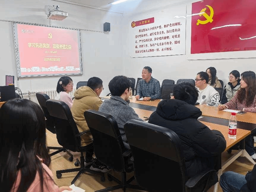 大会第一项,由韩永昌教授讲授以“学习先进典型,凝聚奋进力量”为主题的精彩党课。韩教授开篇便生动地列举了李清学、焦裕禄、黄大年、张富清以及王继才夫妇等英雄人物的感人事迹。这些楷模虽来自不同领域、身处不同时代,却都闪耀着共同的精神光芒——对祖国、对党和人民的无限热爱,以及无私奉献的崇高品格。随后,韩教授引导党员同志们深入思考:“他们为何能始终如一地全心全意为人民服务?”答案是坚定的理想信念。正是这份信念,支撑着他们在平凡岗位上坚守初心,创造出不平凡的业绩,成为时代的精神坐标。不仅如此,韩教授还结合本支部师兄师姐的真实故事,让大家深刻认识到“先进典型就在身边”。这些身边榜样,以实际行动诠释着党员的责任与担当,激励着我们善于发现并学习身边人的优秀品质,从点滴做起,传承红色基因。最后,韩教授满怀期待地鼓励支部全体党员,珍惜时光,不断提升自身能力,充分发挥党员的先锋模范作用,立志为社会贡献更多力量,在新时代的伟大征程中书写属于我们的奋斗篇章。