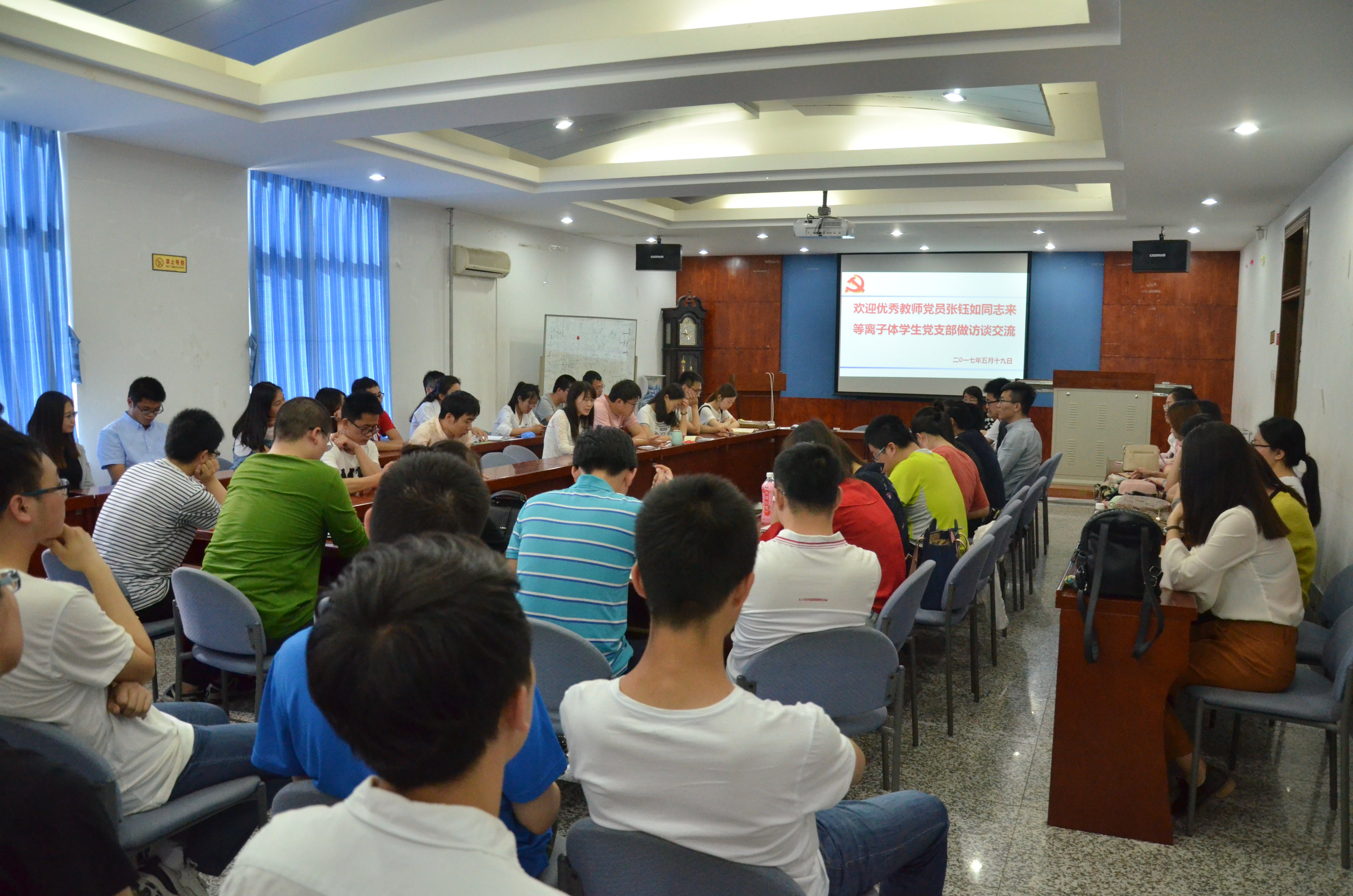 为进一步落实学校工作要求,深入发挥红色基因在学校“双一流”建设中的重要作用,物理硕博等离子体第二学生党支部根据活动计划,于5月19日在物理系楼322会议室,开展红色基因主题教育系列活动——“红色筑梦人-优秀教师面对面”,召开了以“研之有道”为主题的访谈交流会。参加此次活动的有乐鱼(中国)等离子体专业优秀教师党员张钰如同志,物理硕博等离子体第一、第二学生党支部的党员、积极分子,以及群众。张钰如同志作为此次活动的邀请嘉宾分享了她的科研历程,给学生支部成员上了一堂特别的党课。