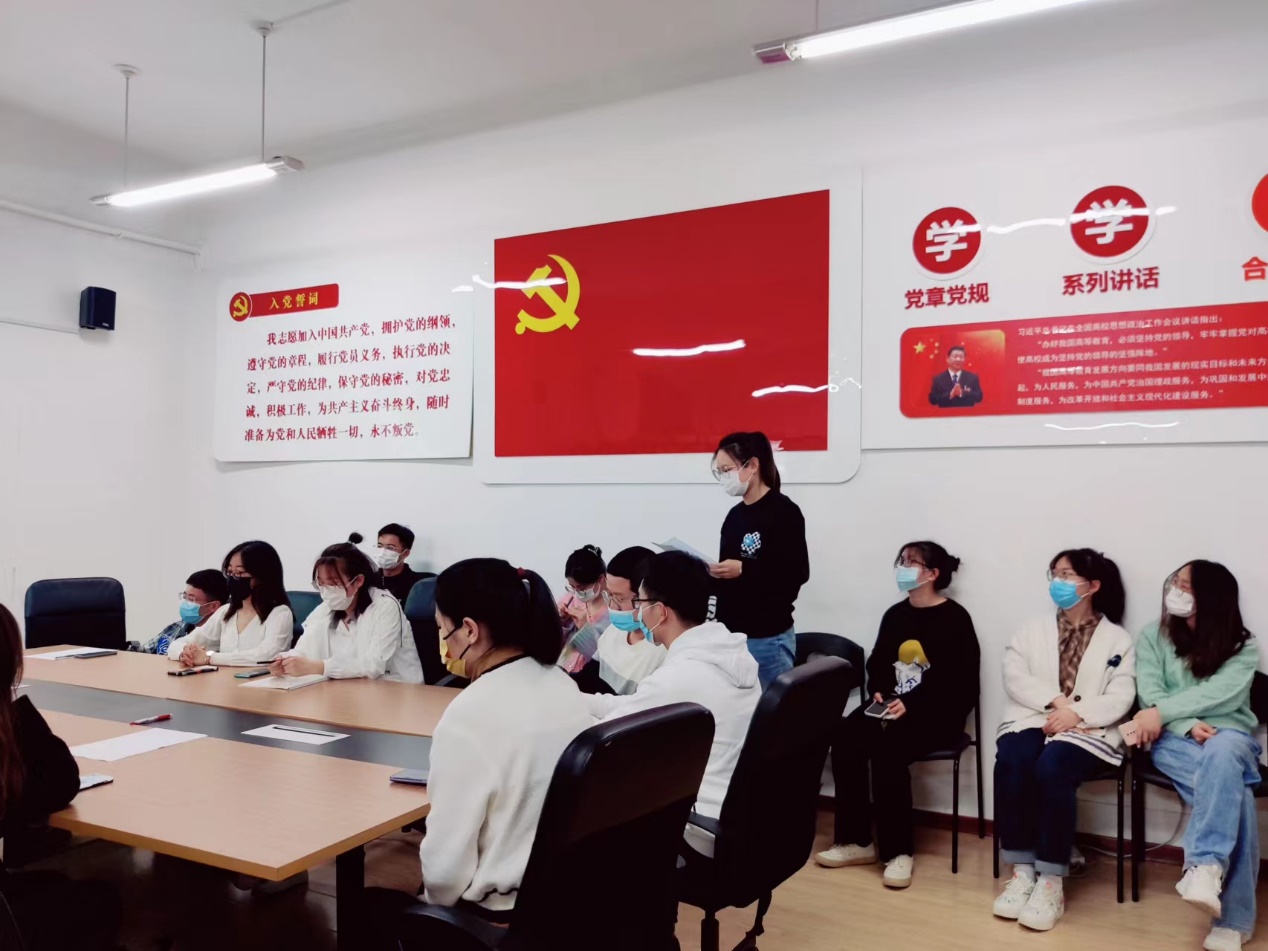 大会第三项为讨论确定发展对象相关事宜。刘津依同学经过一年以上培养教育和考察,基本具备党员条件。在会议上,刘津依同学向党组织汇报了自己对党的认识,入党动机,剖析自己的优缺点,并表明成为党员的决心,表示将进一步接受党组织考察。其两名培养联系人分别为陈永睿同志和宋林育同志,他们分别介绍了该同学的基本情况和在考察期间的表现,并发表意见,表明该同志基本具备条件,说明了可以转为发展对象的意见。经过支部全体党员和群众充分讨论和投票,决定确定刘津依同学为发展对象。