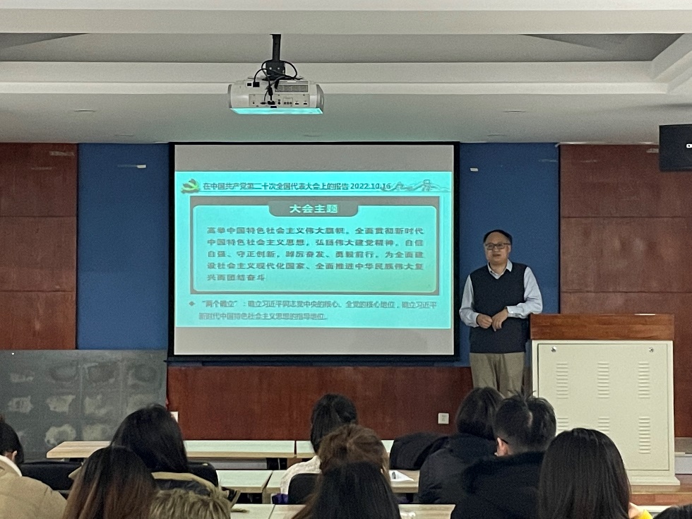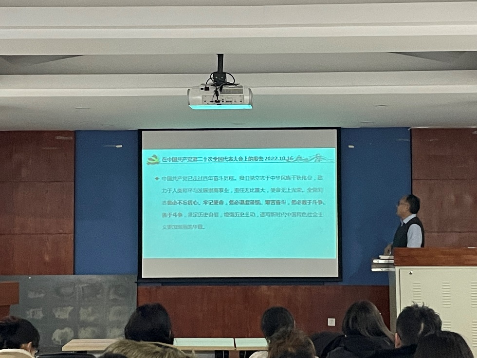 中国共产党第二十次全国代表大会于10月16日至22日在北京举行。为深入学习宣传贯彻党的二十大精神,按照学院党委部署,硕博等离子体第一学生党支部于2022年12月6日19:00在乐鱼(中国)322会议室举行主题党日活动,特邀乐鱼(中国)副院长杨德正老师为支部讲授《学习党的二十大精神,坚定“四个自信”、做到“两个维护”》的主题党课。本次主题党课的参与人员为全体党员同志、支部发展对象和入党积极分子。