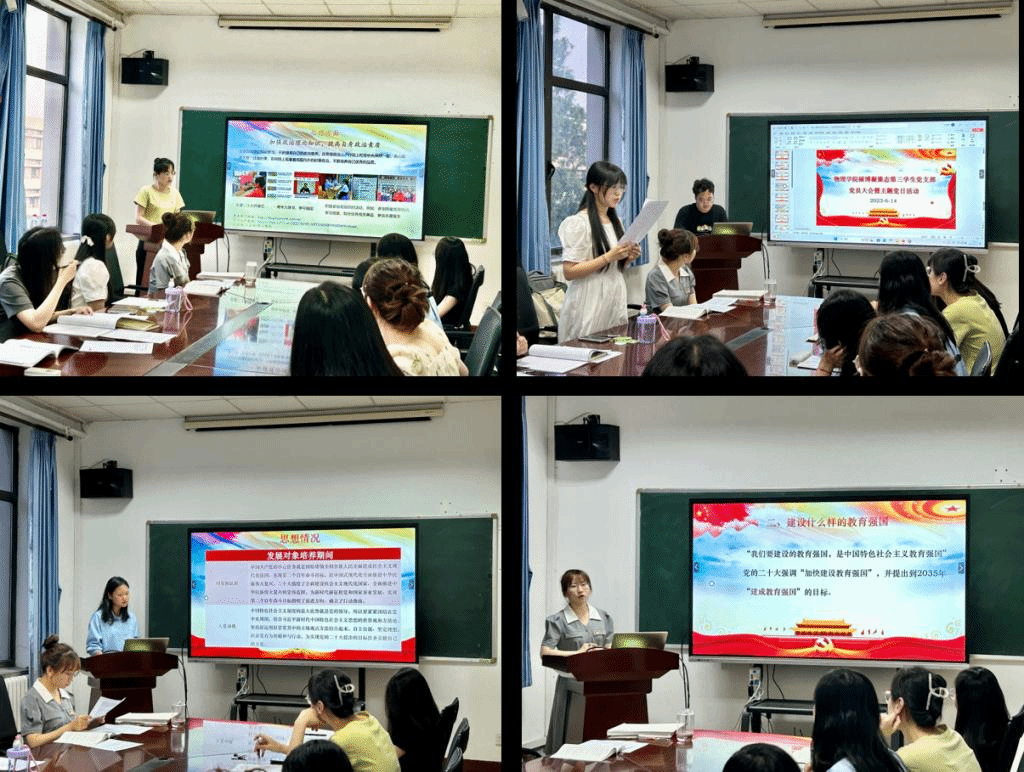为积极响应党组织有关发展党员的号召,加强党员队伍建设,乐鱼(中国)硕博凝聚态第三学生党支部于2023年6月14日开展党日活动,在物理楼425会议室顺利召开了党员大会,并进行理论学习。会议由党支部书记赵博同志主持,全体党员参与了此次会议。