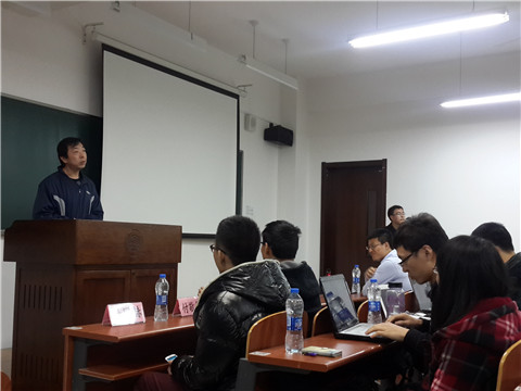 随后,去年获得国家二等奖的参赛队伍进行了比赛经验的介绍和比赛流程的模拟。首先由队员梁敬淯介绍了她们的队伍,分享了一些他们的比赛经历和比赛经验。随后,另外四名队员进行了决赛的比赛流程演示。比赛形式三支队伍一组,两支队伍进行正反方辩论,另外一组作为评论方点评,流程依次为:正方PPT展示反方提出的题目;反方向正方提问,正方回答;反方作报告,正反方辩论;评论方提问,正反方回答;评论方报告;正方总结发言。队员们各司其职,正方条理清晰的展示,正反方剑拔弩张的辩论,评论方细致风趣的点评,生动形象地为同学们再现了决赛的情景。之后,滕永杰老师对几名队员辩论时的表现进行了点评,让同学们对比赛的形式有了十分细致的了解。