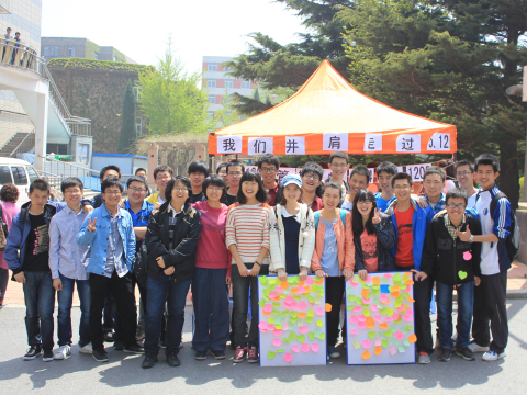 为提高活动影响力,应物理1204团支书邀请,管理与经济学部1202支部,1203支部以及电子信息与电气工程学部1208团支部也加入了此次系列活动中,活动为期5天,定在5.12,汶川地震五周年这一历史日子里,以此告慰逝者。