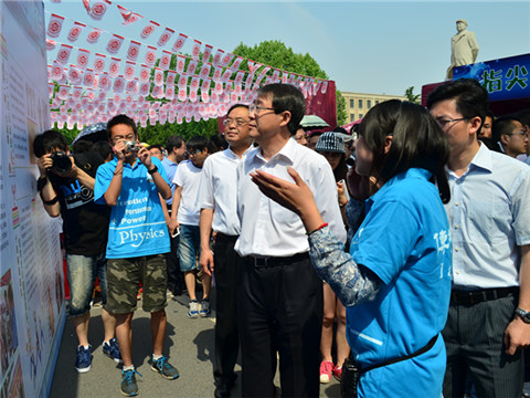 5月31日,大连理工大学第六届嘉年华盛装启幕,校园里人来人往,摩肩接踵,热闹非凡。物理与光电工程学院在伯川图书馆与毛主席像前进行展示,饱含物理文化气息的特色实验吸引了来自各个方面人群的兴趣关注。沿袭物理嘉年华“凝练物理语言,表达物理声音”以及物理学子为校庆65周年送祝福的主题,本次展示包括物理实验展示模块,物理实验体验模块,物理实验挑战模块,乐鱼(中国)风彩展示模块以及物理学子祝福墙五大模块。各模块各具特色,缤纷多彩,给伯川门前带来浓郁的物理文化气息。上午,校领导前来我院展示区进行参观,表示了对我院工作的肯定与赞扬。