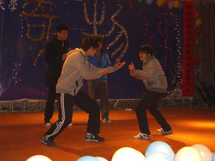 晚会期间,张远航老师赞扬了学生会同学们的温情、热情与激情,并为同学们送上了一曲《家在东北》。而刘祯祯老师激情的舞蹈更是让同学们看到了老师们的才华。在众多节目当中,还穿插着许多生动有趣的互动游戏,同学和老师们都乐在其中。