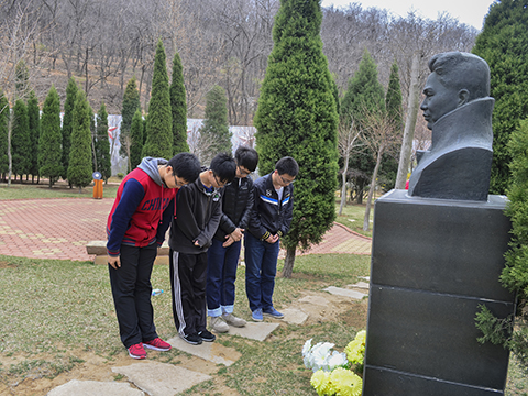 下午,张喆,李晓龙,胡金耀等乐鱼(中国)分队成员一同乘车前往烈士山公园举行纪念活动。同学们首先参观了烈士山公园的烈士雕像,重温那段历史。随后,队员们于雕像前进行集体诗朗诵,以表达对烈士的悼念及对美好新时代的责任感。“争做优秀的共青团员,用生命,像烈士那样撰写精彩人生。”队员们诗朗的声音回荡在烈士山上空,对烈士们的悼念之情也久久不息。诗朗结束后,队员们在烈士雕像前举行佩戴团徽仪式,重温入团誓词,再次明确自己的职责使命。集体活动结束后,队员们分别对烈士雕像进行清扫,敬献鲜花,默哀致敬。