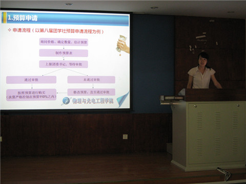 首先,魏鹏介绍了团学工作中常面临的场地租借及使用的相关流程。张紫薇则围绕预算申请、购物相关问题、发票相关知识以及本年度账目等财务问题作了详细的说明。孙雨周对宣传工作的正常开展以及一些日常的宣传流程展开了精彩的介绍。