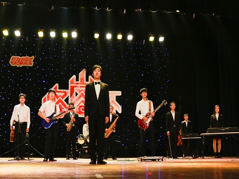 且看今日,物理器乐团在山上礼堂大放异彩。优美抒情的小提琴,深沉平静富于变化的萨克斯,细腻丰富表现力强的吉他,气氛热烈节奏鲜明的架子鼓,他们在物理乐器人的完美融合中奏出华丽的乐章。跳动的音符在弦上迸发,激昂的旋律从指间流淌,一曲激情澎湃的《VICTORY》,向人们昭示着前方的希望之光,梦想就在不远处,胜利就在不远处。物理器乐团的完美演出博得一阵又一阵掌声。