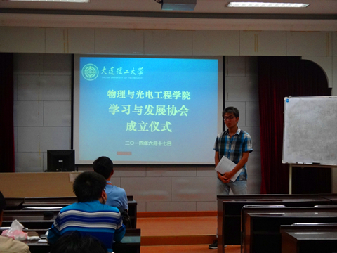 6月17日晚,伴随着考试周紧张而严谨的氛围,物理与光电工程学院学习与发展协会正式宣告成立,成立仪式于物理与光电工程学院418会议室举行。学院2013级队辅导员俞洲老师作为协会指导教师出席了此次仪式。
