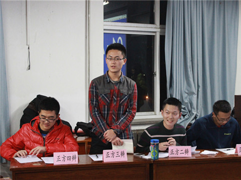 12月6日晚,面向14级新生辩手的“四院辩论赛”于材料馆307进行了物理与光电工程学院对抗材料科学与工程学院的激烈比拼,我院作为正方就“贫穷/富贵更容易滋生丑恶”的辩题同反方辩友展开了精彩的对决。最终,我院以轻微弱势不敌对方。