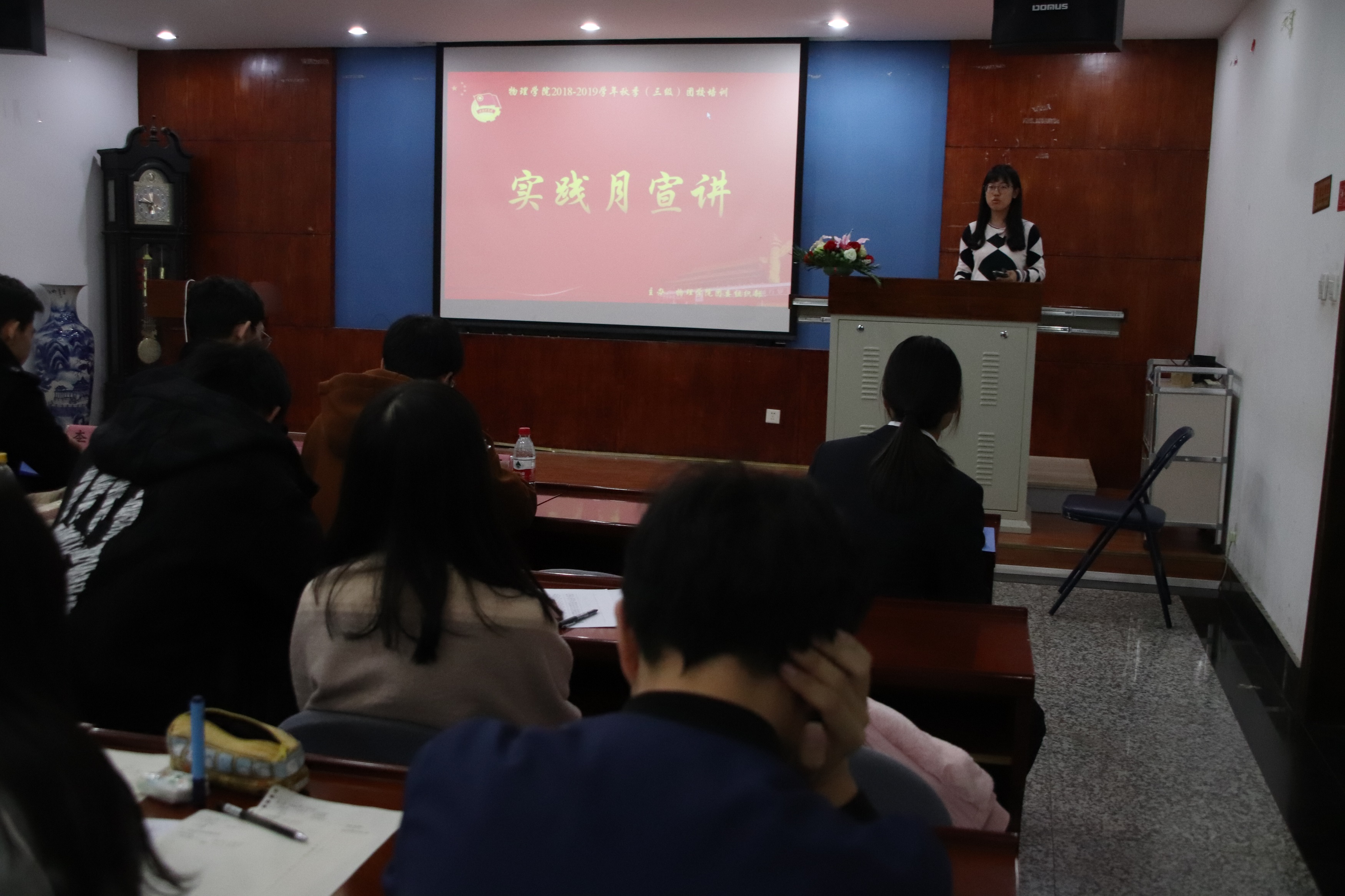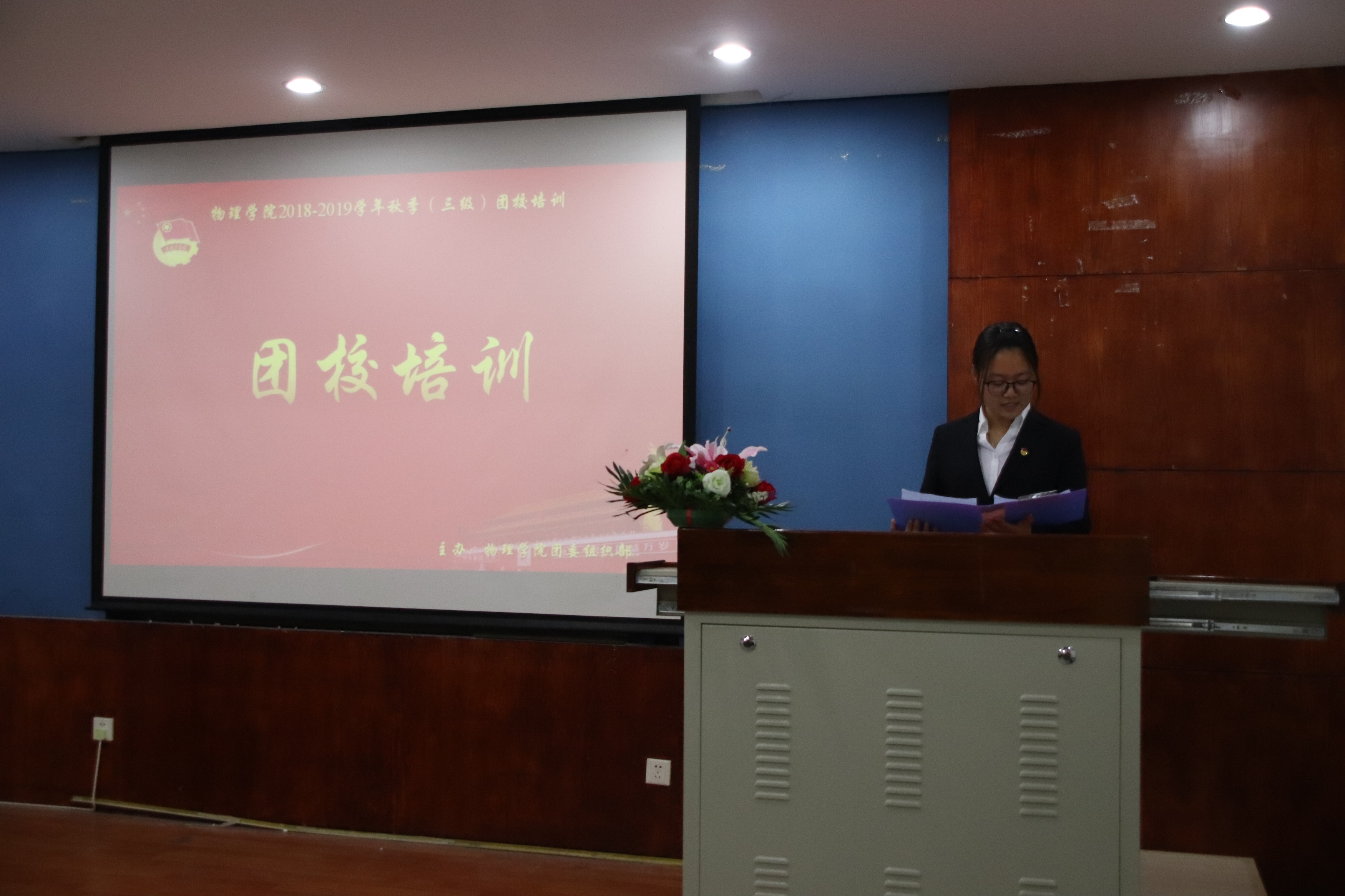 为推进实践月主题活动顺利开展,并响应学校号召,积极建设活力团支部,我校乐鱼(中国)于11月19日晚上六点在物理系楼322教室开展2018-2019学年秋季第四期团校培训。出席本次培训的嘉宾有学生会主席兼团委副书记边于,团委常务副书记刘禹君,团委实践部部长李睿,团委组织部部长何浩。