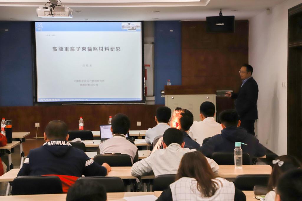 2019年10月11日15:30,中国科学院近代物理所菁英班宣讲在乐鱼app登录入口系楼322教室成功举办。莅临现场的嘉宾是中国科学院近代物理所赵行波研究员和段敬来研究员。