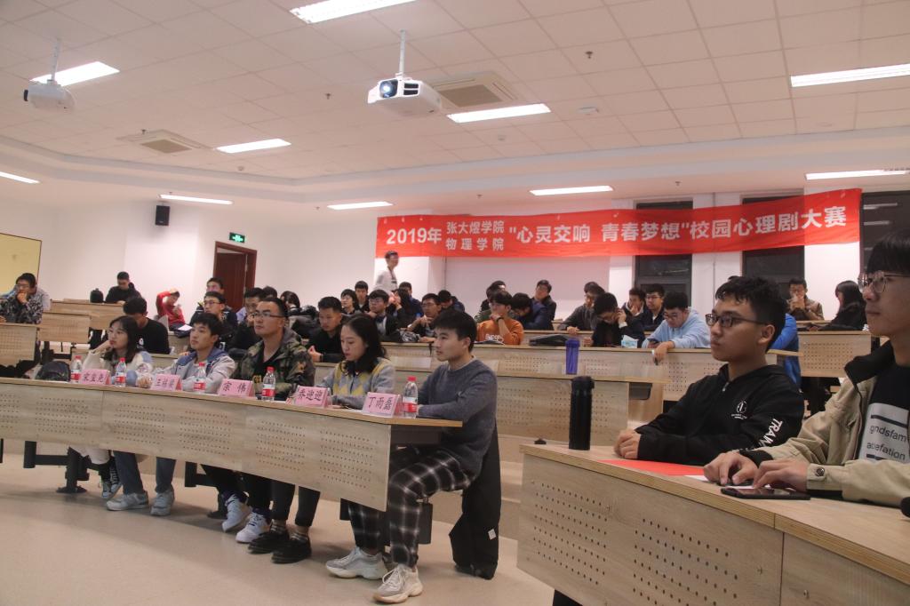 2019年10月26日晚6点,乐鱼(中国)与张大煜学院联合举办的校园心理剧大赛在经济管理学院B105顺利举行。出席评委有张大煜学院团委书记兼2019级辅导员宗伟,张大煜学院学生工作办公室助理辅导员乔迎迎,乐鱼(中国)团委常务副书记宋玺尧,乐鱼(中国)学生会会长王栋梁,乐鱼(中国)自强社社长丁雨磊。
