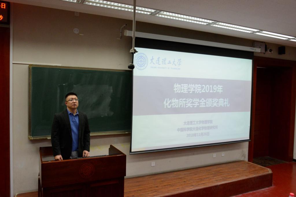 颁奖仪式结束后,由物化所研究员熊川南为学生对物化所进行简要介绍。熊研究员从“大连光源”自由电子激光装置讲起,展示化物所近几年取得的科技成就,深入浅出地讲解其中原理,引发同学们极大兴趣。熊研究员也表达出自己对在座各位学生的期盼,希望下一代科研工作者们能够取得更高更好的成就。