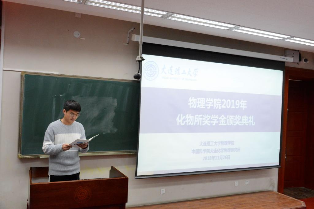 2019年11月26日中午12时,乐鱼(中国)化物所奖学金颁奖仪式于第一教学馆209教室顺利举行。本次会议我院邀请到化物所研究员熊川南、于晓、乐鱼(中国)2018级辅导员张胜男作为嘉宾,主持人为乐鱼(中国)副书记助理唐健璐。