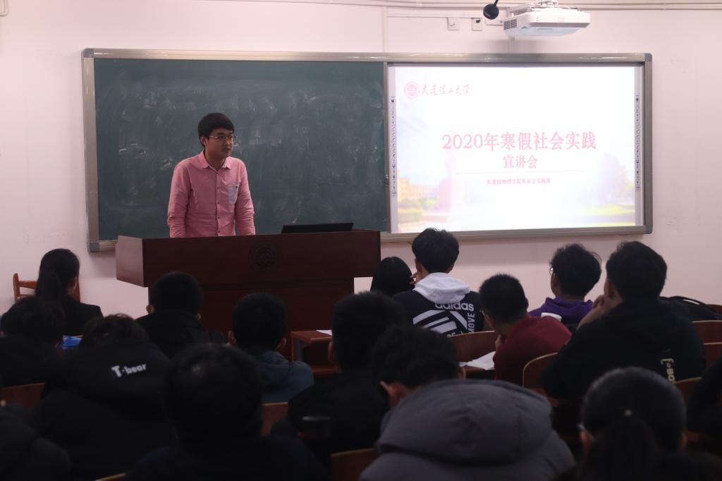 演讲会开始,唐雯月同学分别向大家展示 “传承红色基因” “大工学子母校行” “我们的中国梦”等几项实践主题的宣传片,接着就各个主题分别进行介绍,讲解结项审核、评优办法等方面的注意事项。并讲解本次寒假社会实践活动的相关事宜,分享有关寒假社会实践的经验,提出对同学们寒假社会实践活动的建议,同学们从唐雯月同学的分享中获益匪浅,对自己的寒假社会实践充满信心与期待。之后,乐鱼(中国)17级辅导员唐建璐老师谈论自己对于寒假社会实践的想法,并动员大家积极踊跃参与此次寒假社会实践。唐老师先从他自己在大学生活中参加社会实践的一些体悟以及社会实践对于他个人能力与信心的提升,指导建议大家积极参与实践,认真进行实践。然后,唐老师从物理学子本身特点的角度分析参与实践的必要性。最后,唐老师也表示出他对于这次实践活动的期待和信心,并对计划参与2020寒假社会实践的同学提出祝贺。