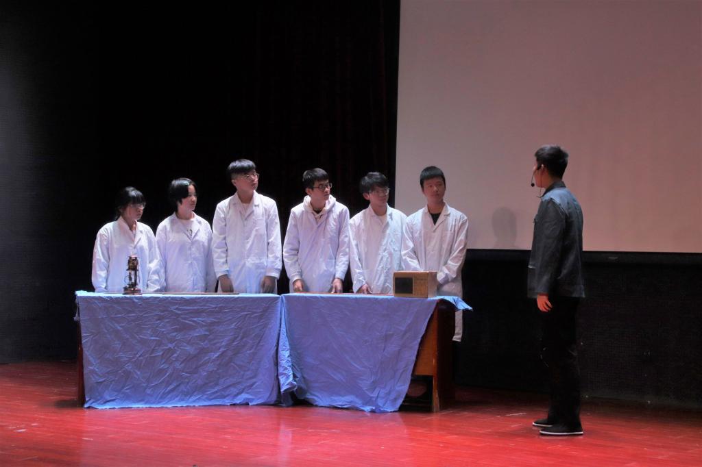 本次联欢晚会的高潮当属话剧《王大珩》无疑。王大珩先生是我院的奠基人和开拓者,为我院的建设作出巨大贡献。硝烟散去,百废待兴,在祖国需要人才之际,王大珩先生毅然回国,于大连工学院创办应用物理系。面对仪器的短缺,他不辞辛苦,常常亲自去旧货市场寻找可以用于实验的旧物件;面对英国公司的邀请,他断然拒绝,一心为中国制造属于自己的光学玻璃。闫子晗等演员把王大珩前辈为祖国光学事业奉献一切的赤诚之心表现得淋漓尽致。王大珩剧组通过《王大珩》话剧宣传大珩先生的感人事迹,号召同学们勿忘前辈嘱托,用科学开创时代,用技术引领未来。
