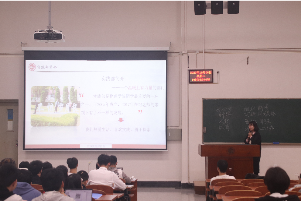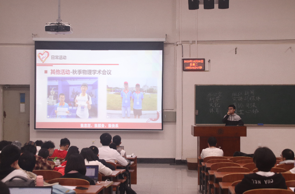 接下来,由各部门的部长介绍各部门的工作内容以及部门特色。从学生会到团委十二个部门依次进行介绍。在乐鱼(中国)的领导下,乐鱼(中国)团学社的各个部门分工合作,宣传并举办院内各种活动,共同致力于服务学生、学院建设。在招新宣讲会上,办公室新颖的ppt、体育部部长阳光开朗的开场白、以及实践部门的招新短视频等新颖有创意的招新方式引得全场热烈的掌声。在团学社部门招新宣讲完毕后,校青年协会、乐鱼(中国)足球队,乐鱼(中国)的辩论队向刚刚迈入大学的20级同学发出诚挚的邀请。