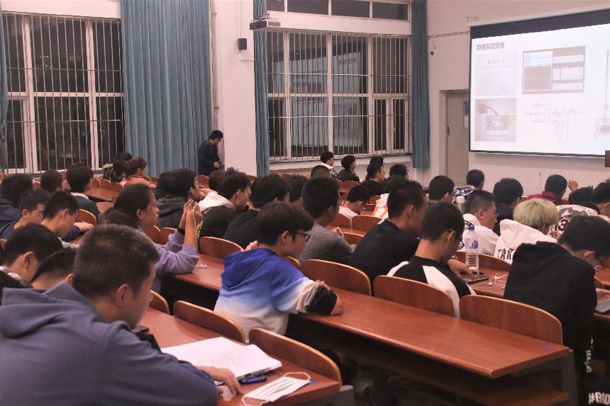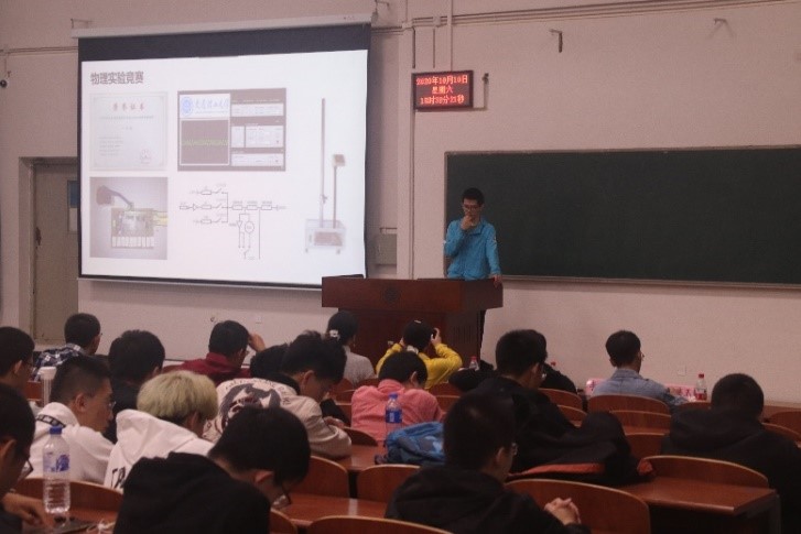 之后由优秀学习标兵李天铭为新生介绍大学四年的科创学习与比赛,包括创新创业学院的ACM班、机电实践班、数学建模班等。他还介绍物理学术竞赛、互联网+等科创竞赛,并强调科创不应以奖学金为目的而是重在学习新知识。