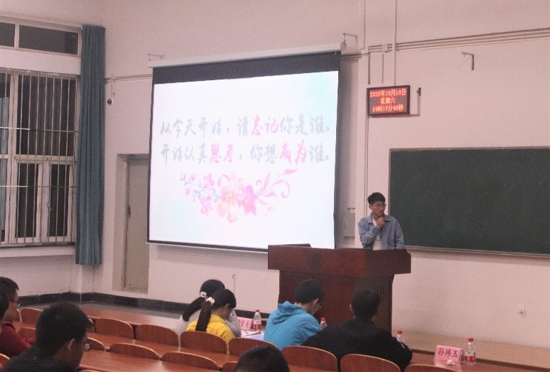 选择毕业就业的孙玮玉为同学们介绍生涯规划的重要性。他提议同学们“从今天开始,请忘记你是谁,开始认真思考,你想成为谁”。虽然就业距离新生还比较远,但学长的话却为他们埋下未来发展的种子。