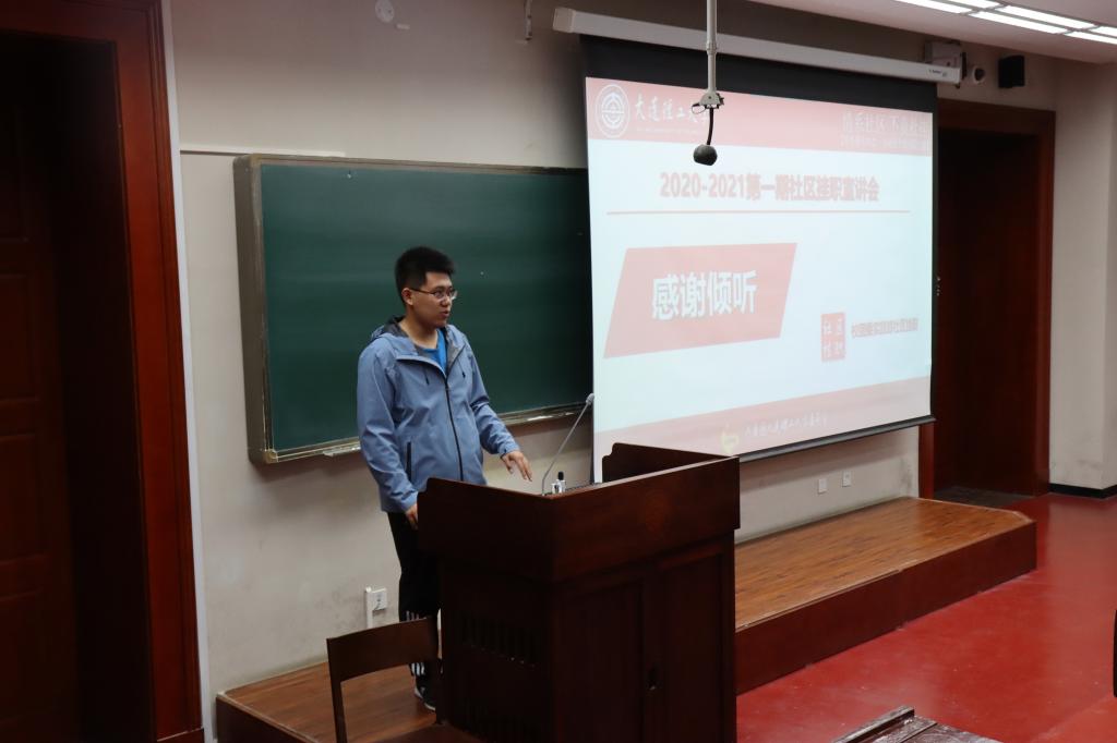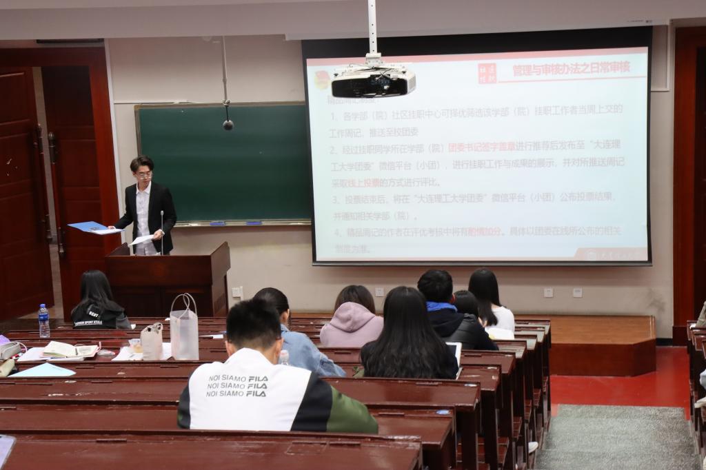 为响应团组织的号召,共青团大连理工大学委员会联合大连市沙河口区、甘井子区团区委开展大学生社区挂职特色服务活动。由乐鱼(中国)、大连理工大学白俄罗斯国立大学联合学院、经济管理学院联合举办的社区挂职培训宣讲会于10月18日下午15:00在第一教学馆209教室顺利召开。乐鱼(中国)学生郭沛担任本次宣讲会主持人。