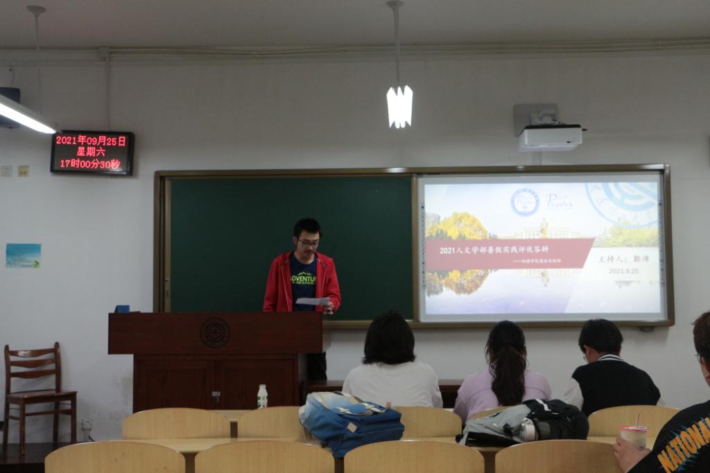 2021年9月25日下午5:00,由乐鱼(中国)与人文与社会科学学部联合举办的2021年暑假社会实践评优答辩在综一214教室成功举办,本次答辩的主持人为乐鱼(中国)实践部负责人郭沛,出席本次答辩的评委有乐鱼(中国)实践部工作人员刑静文,戚佳欣,韩振琦。