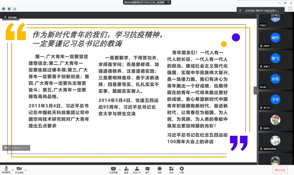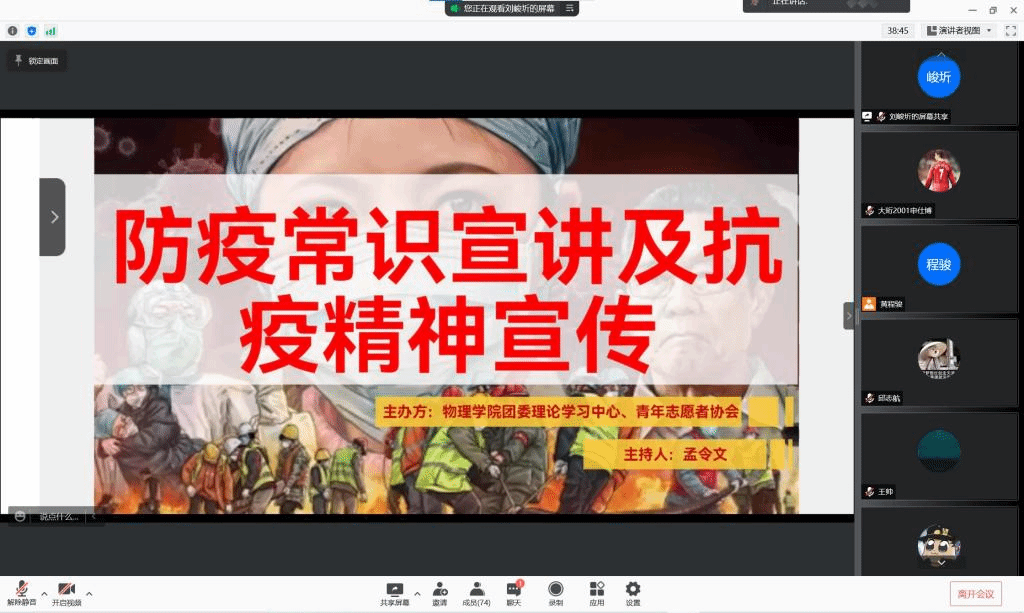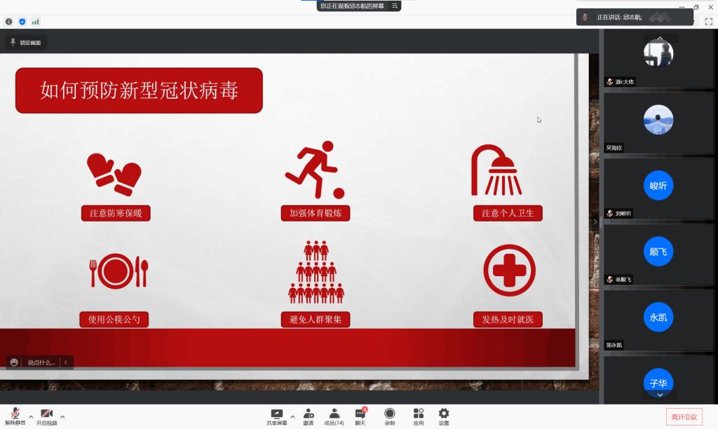 寒冬初至,疫情再次袭来,为学习防疫常识,弘扬抗疫精神,我们相约线上,召开了此次会议。本次宣讲会由来自理论宣传中心的孟令文同学主持,由邱志航同学和刘泽璇同学分别进行了宣讲,参加本次宣讲的还有乐鱼(中国)大一全体同学。